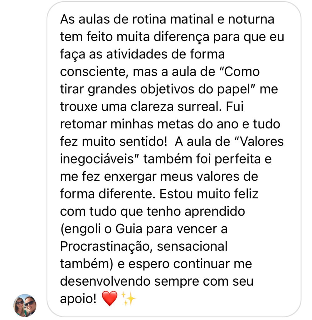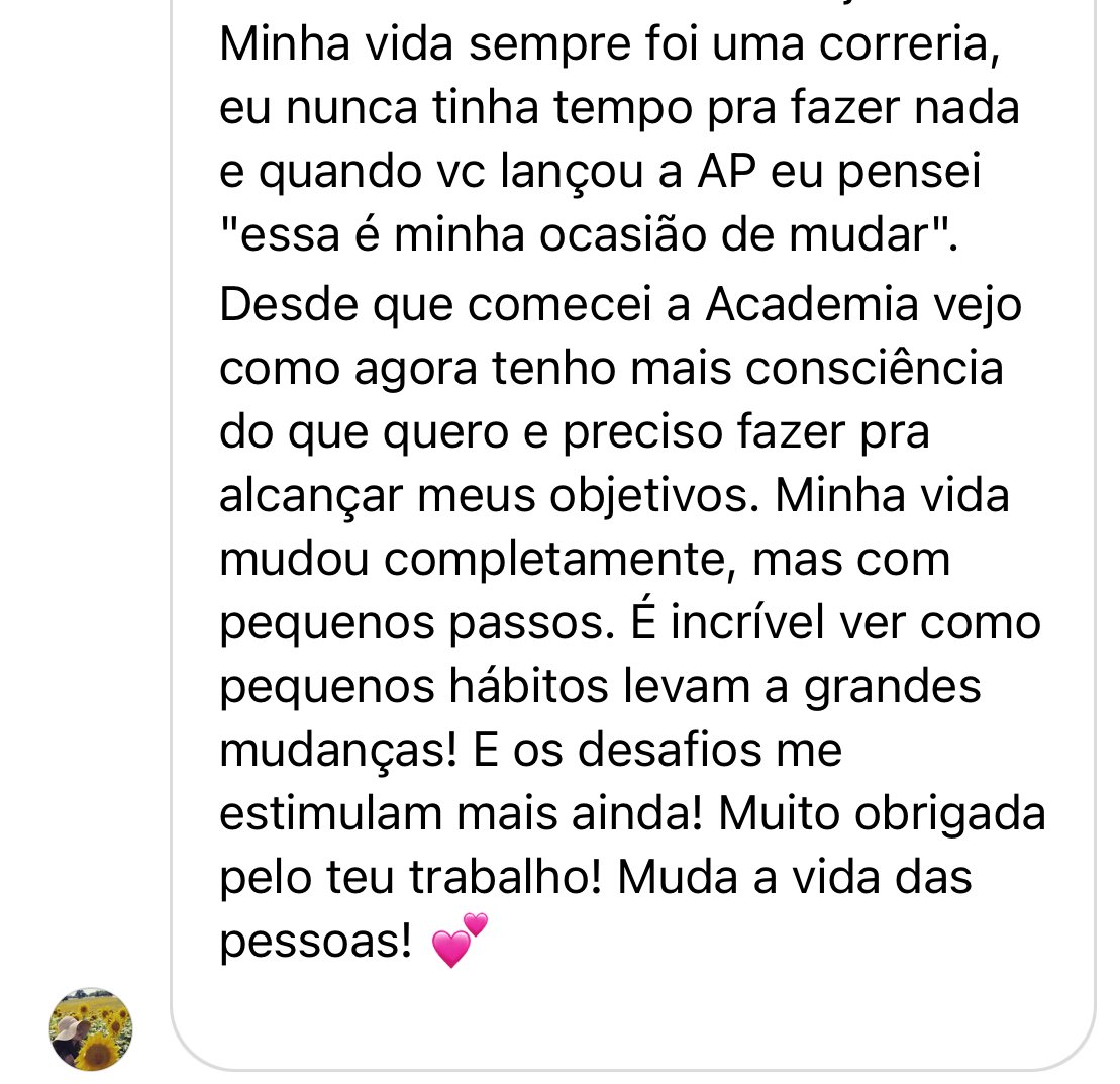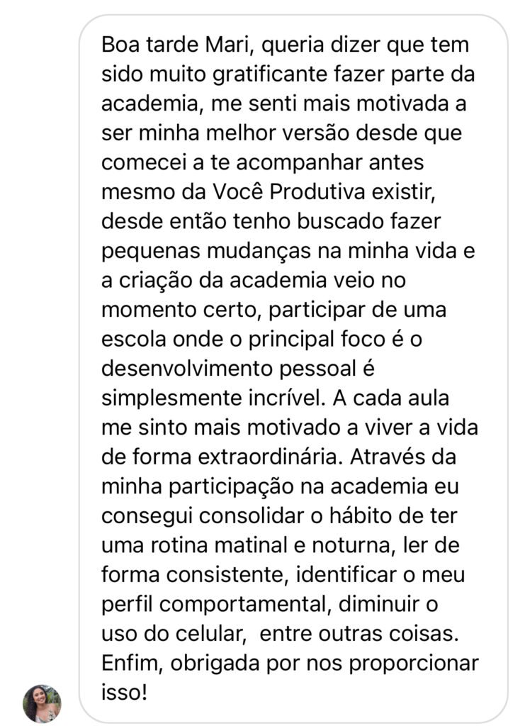 Você não precisa passar uma vida inteira lutando para conseguir ter uma rotina mais leve e produtiva, ou se frustrando por não realizar aquilo que quer. Você pode e DEVE mudar isso. Dentro da Academia, vou te guiar para conquistar tudo isso e ser a sua melhor versão!